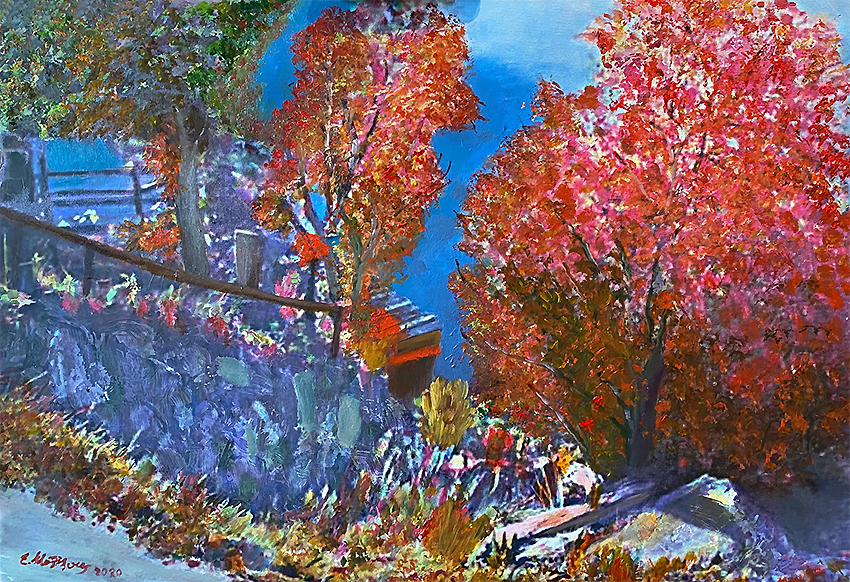 Isérables chemin de la montagne huile sur toile 70 cm x 50 cm
